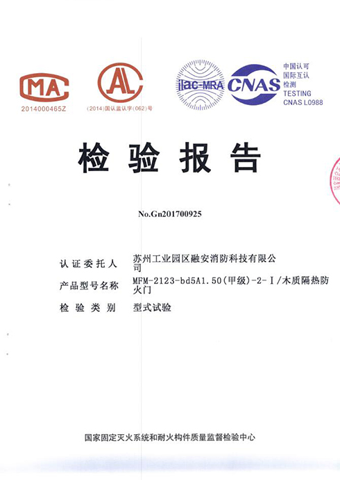 甲級木質(zhì)防火門檢驗(yàn)報告(雙開)