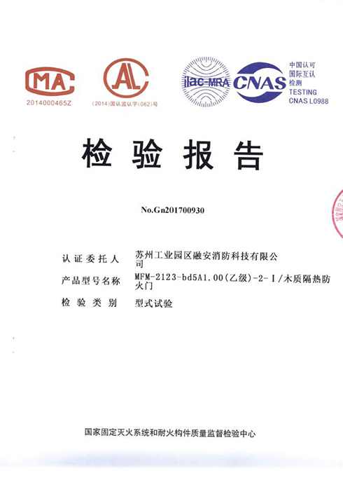 乙級木質(zhì)防火門檢驗報告(雙開)